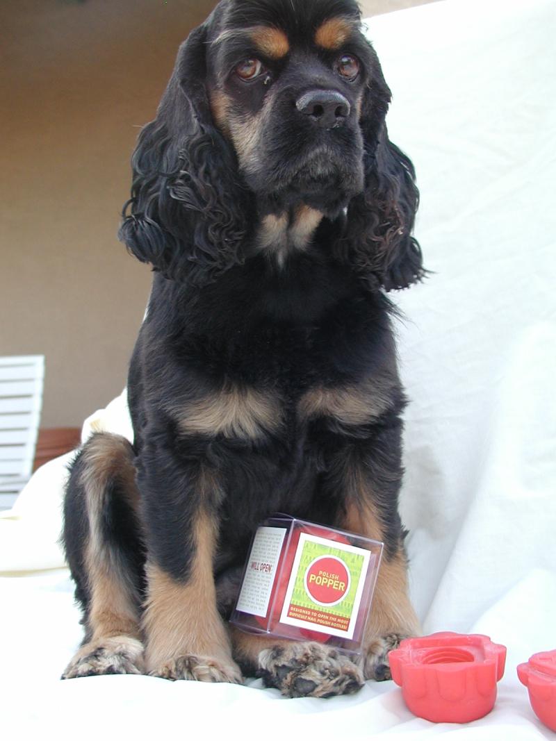 | Sophie, our surviving cocker spaniel as "spokesdog" for a product that never quite took off. | |||||